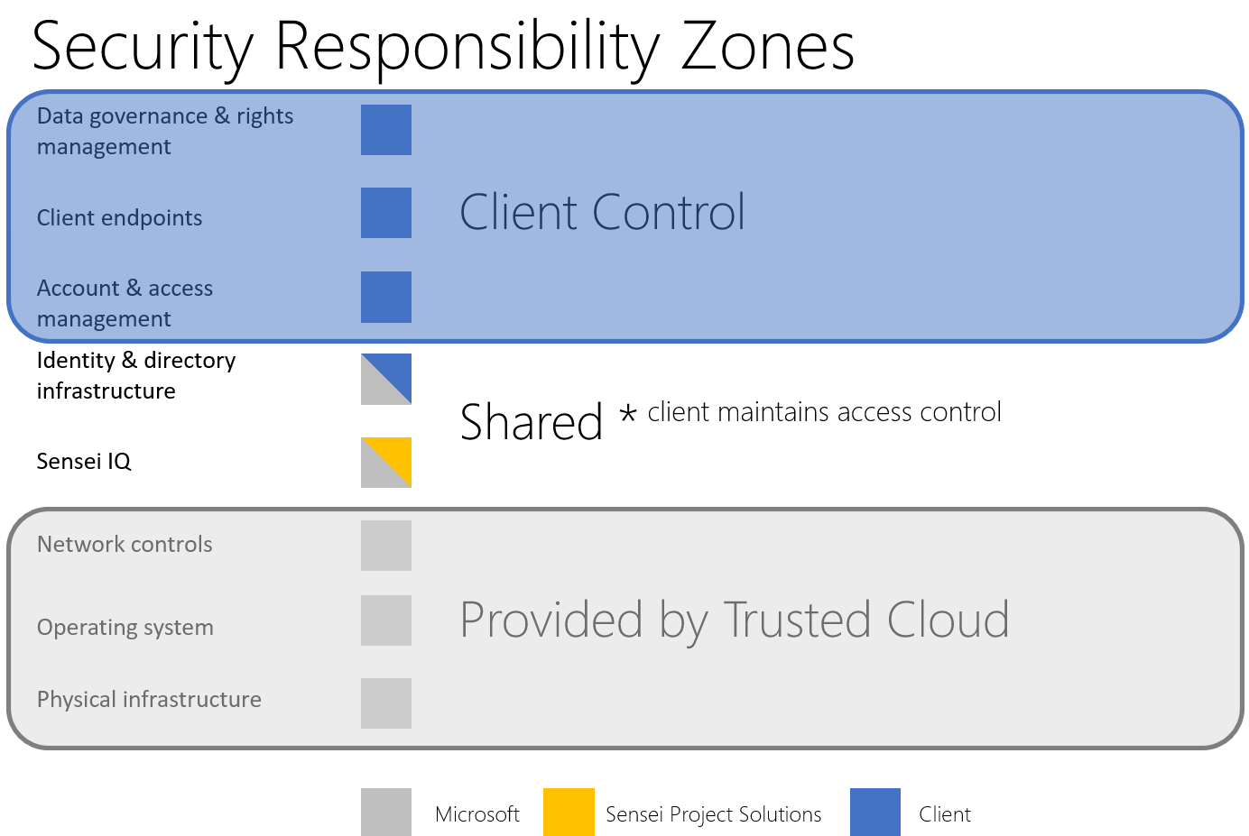 Sensei IQ is developed using Microsoft Power Apps and Microsoft Dataverse, both of which operate within the Microsoft 365 ecosystem. This environment provides enterprise-grade security, compliance, and resiliency by default. While Microsoft secures the cloud infrastructure and platform services (such as identity, networking, physical hardware, and platform compliance), Sensei is responsible for: