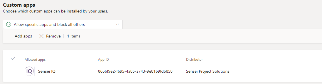 Sensei IQ comes with a Custom Teams App that will be added to the Teams deployment to provide integration features between Power Apps, SharePoint and Teams.