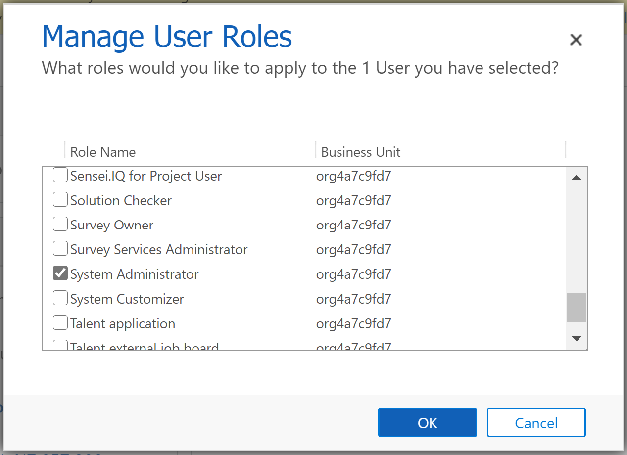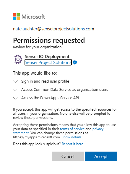 - Dynamics permissions: The Sensei deployment account will need System Administrator permission within the target Power Platform environment for deployment and customization activities.