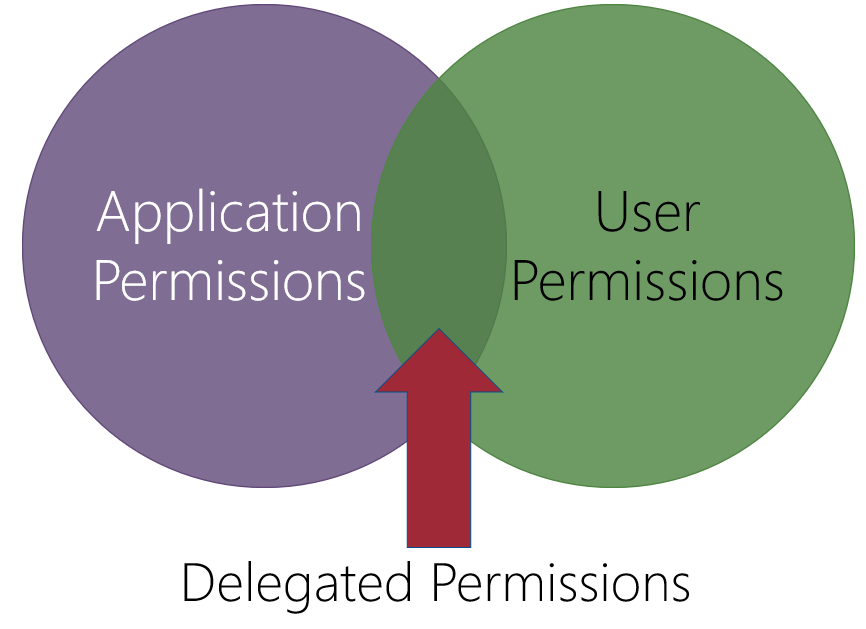 Delegated permissions are the subset of both the current user permissions and the application permissions.