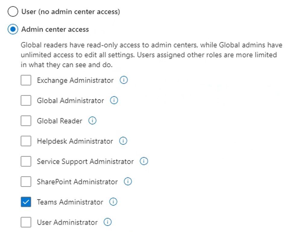 - Teams Administrator: To allow us to deploy the Teams Application and configuration policy for your users we require access to the Teams Admin portal. Grant the Sensei Deployment Account access in the Office Admin Centre. This is a once-off activity that could also be completed by the customer IT governance team if desired.